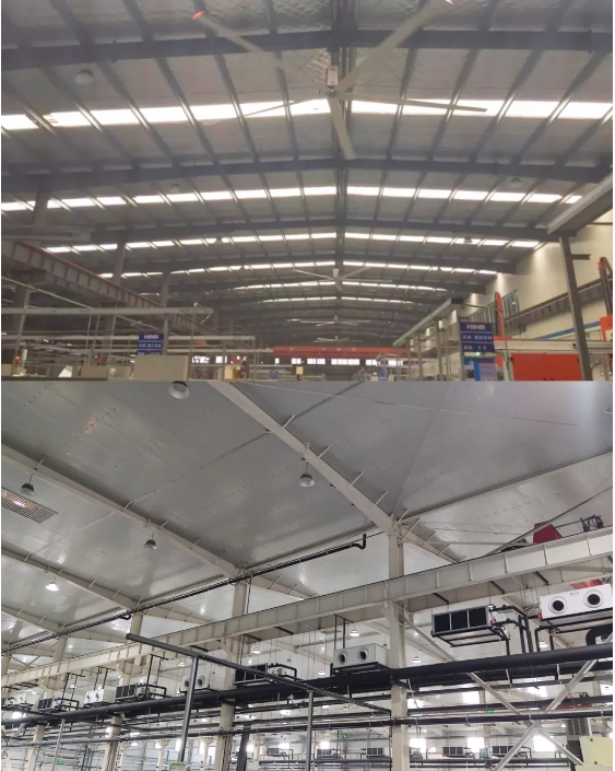 1、營(yíng)造清涼舒適的車間環(huán)境。北區(qū)35000平方米的數(shù)智化車間,中央空調(diào)、新風(fēng)系統(tǒng)全力開放;南區(qū)車間配置多個(gè)排氣通風(fēng)降溫設(shè)備。